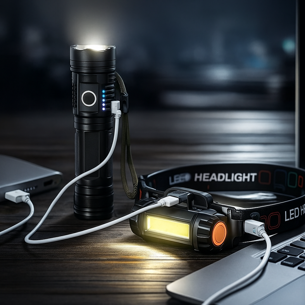 No necesitás pilas caras. Ambas linternas son 100% recargables por USB, compatibles con cargadores comunes, autos, notebooks y powerbanks. Menos gasto, más autonomía, más comodidad.